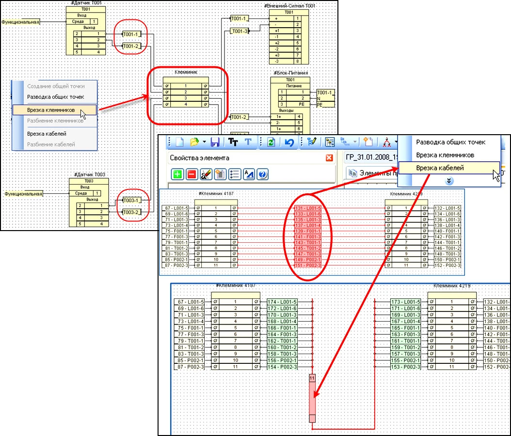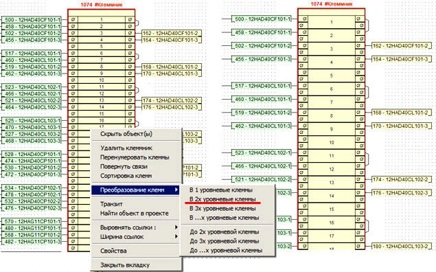 - редактирование клеммников — создание многоуровневых клемм;