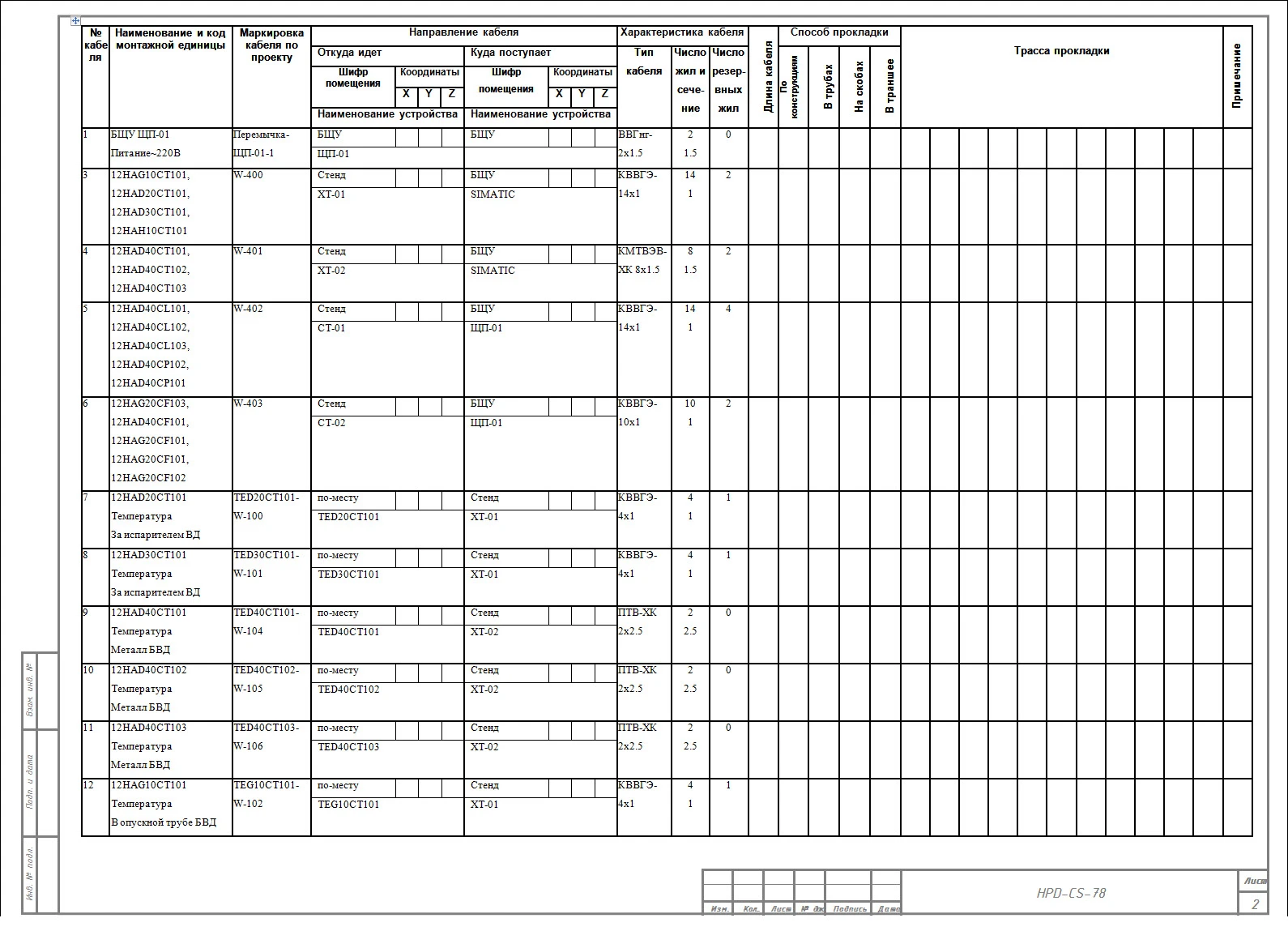 Формирование клеммников и кабелей