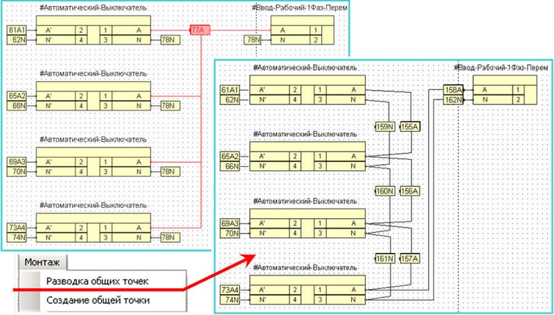 Разводка общих точек