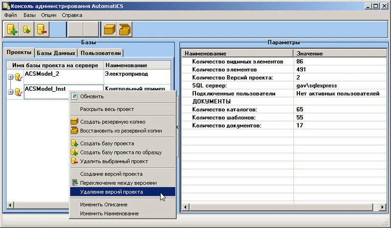 - объединение всех версий проекта и структуры документов в единую базу проекта;