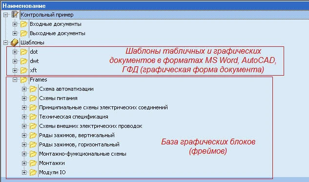 - хранение базы графических блоков (фреймов) в структуре документов проекта;