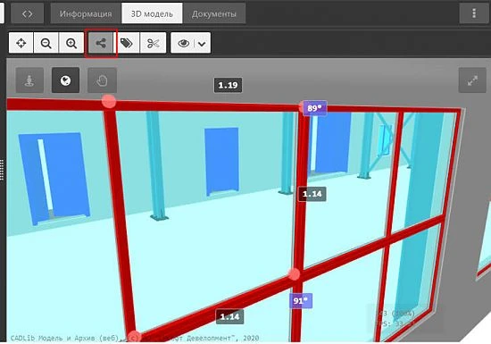 CADLib Веб-сервер включает все необходимое для удобной навигации по модели: реализованы режимы обзора окружающего виртуального мира, полета в виртуальном пространстве, осмотра выбранного объекта, а также удобные функции ограничения просматриваемых частей модели.