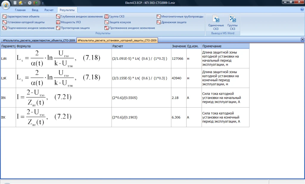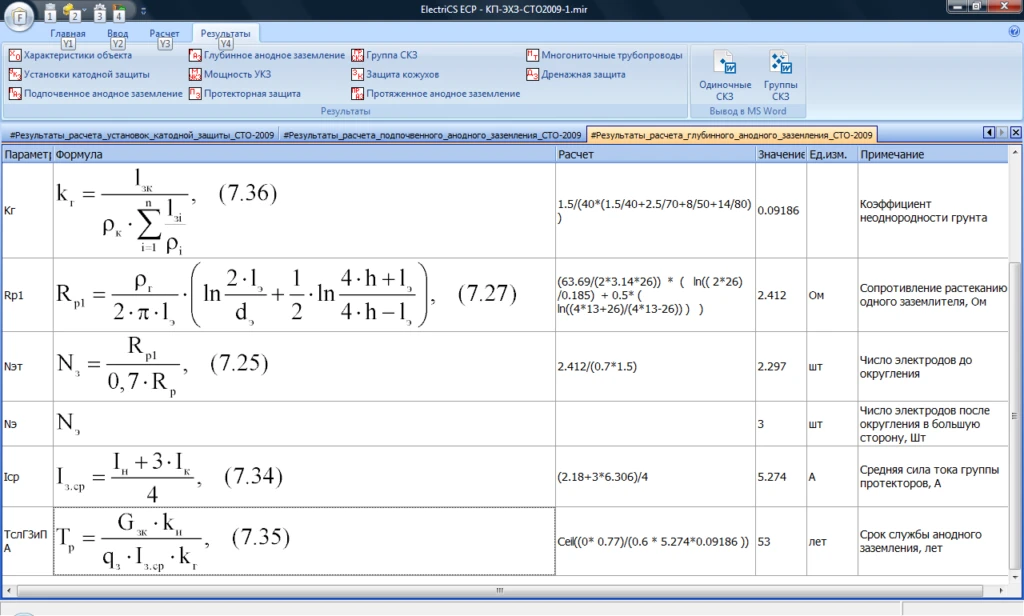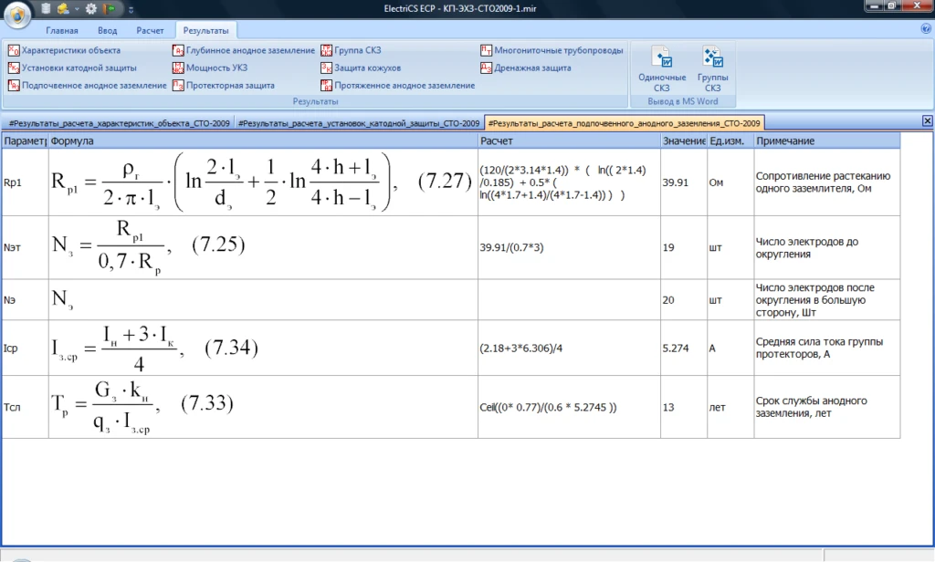Добавлена возможность расчета параметров электролитического анодного заземления.