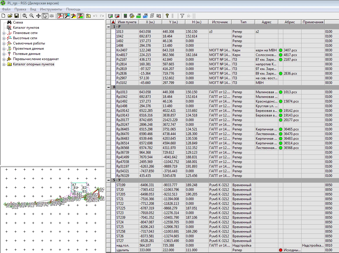 Создание и ведение каталога опорных пунктов