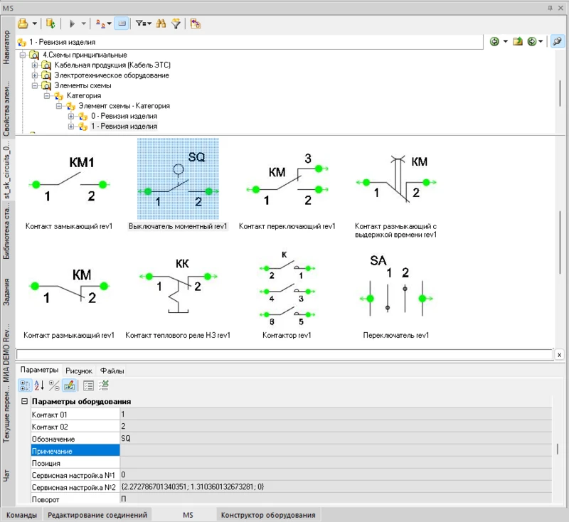 Программа предназначена для разработки всех типов электротехнических схем (марки ЭС, ЭХЗ, ЭК1, ЭК2, ЭН, ЭОО, А, СОП, ЭМ1, ЭМ2, ЭО, СС, ОПС).