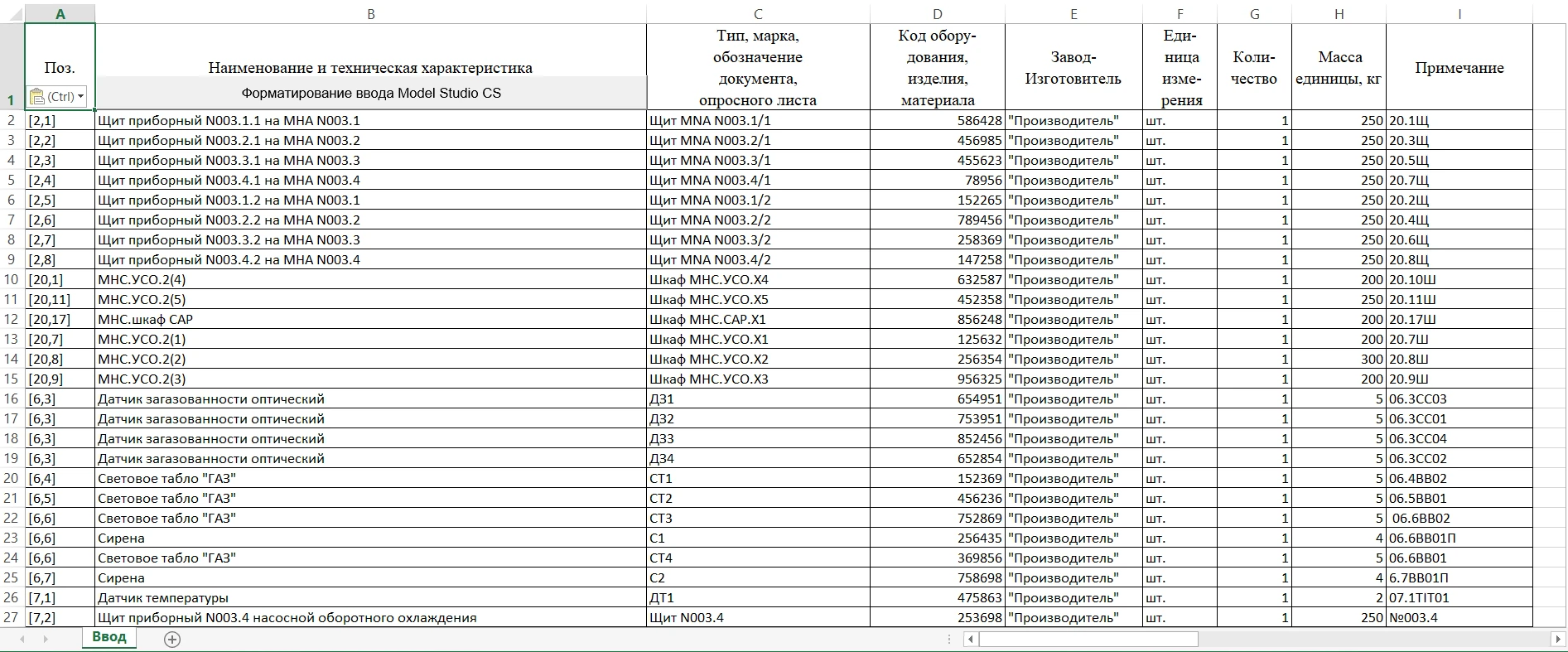 | Конфигурация Конструкции | - | - | - | - |