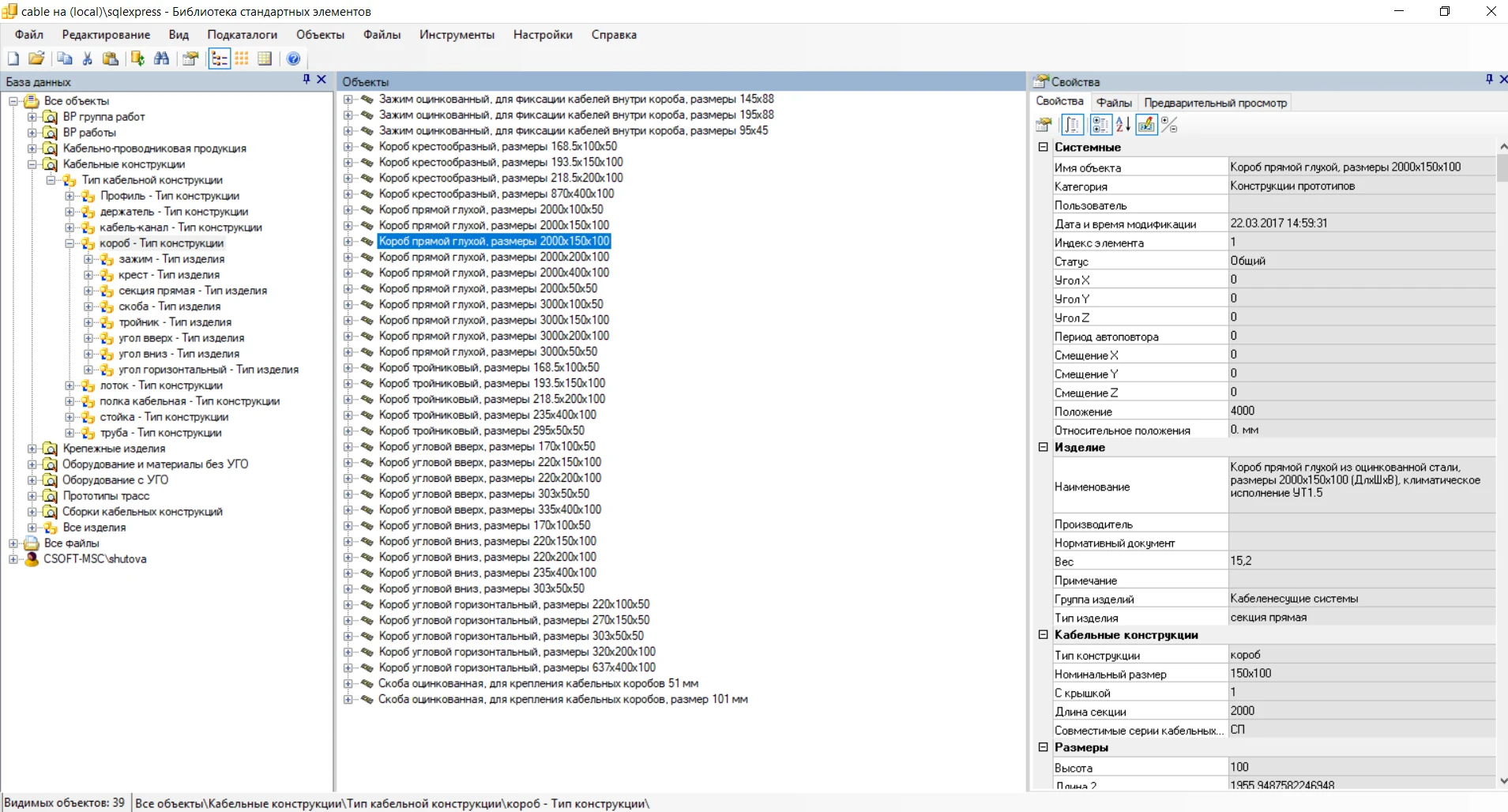 Разработан редактор сечений кабельных трасс, в котором реализован функционал по созданию, выбору и редактированию объектов кабеленесущих систем и крепежных элементов (лотков, стоек, полок, метизов)