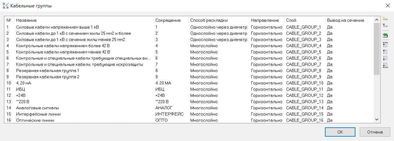 Реализована возможность проверки нормативных расстояний между кабелями разных групп, т.е. возможность поиска коллизий между трассами с разными кабельными группами