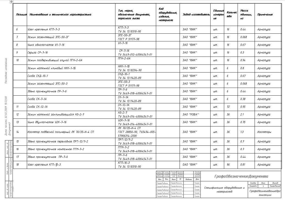 Ведомости опор, гирлянд изоляторов, спецификации оборудования, изделий и материалов и т.д.