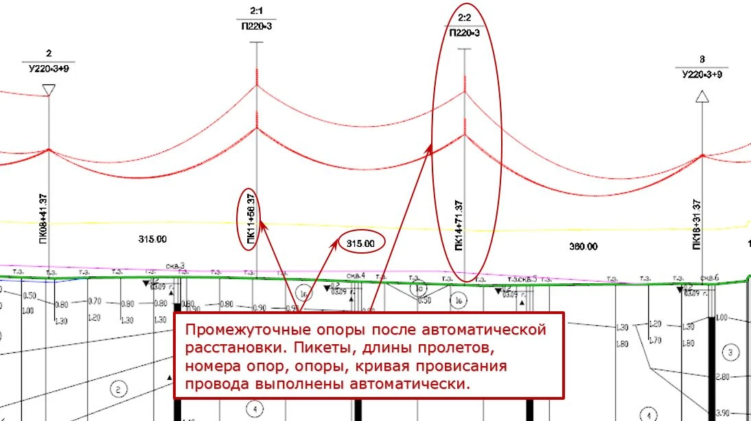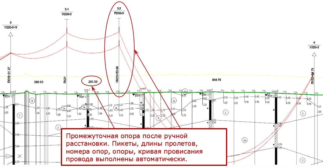 Автоматическая и ручная расстановка опор