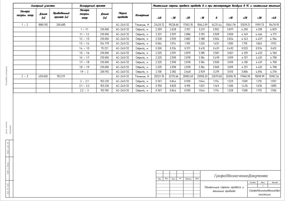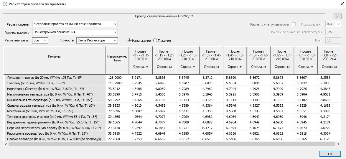 Расчет стрел провеса провода/троса/ВОК по пролетам