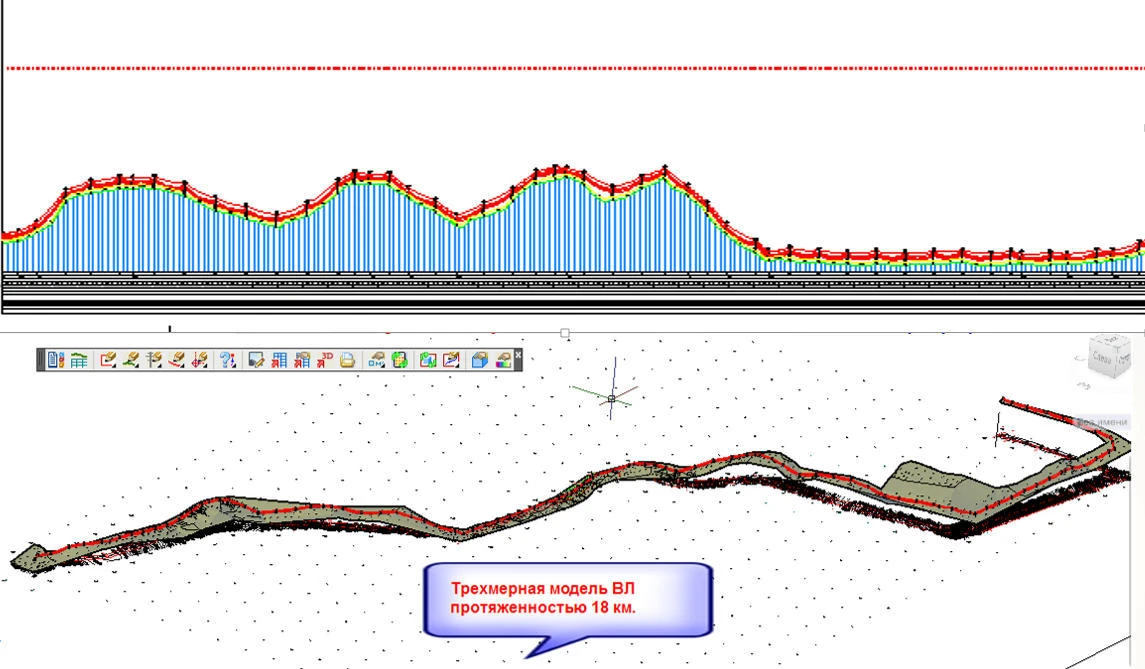 - В программном комплексе Model Studio CS ЛЭП пользователь может работать одновременно с планом трассы ВЛ в 2D и 3D и с продольным профилем трассы;