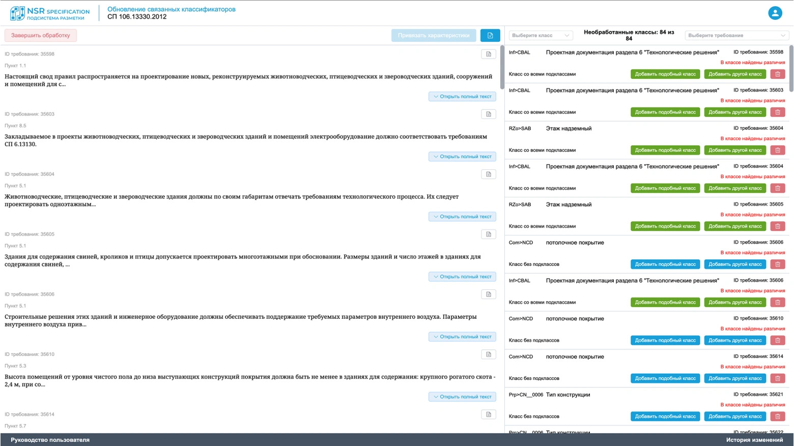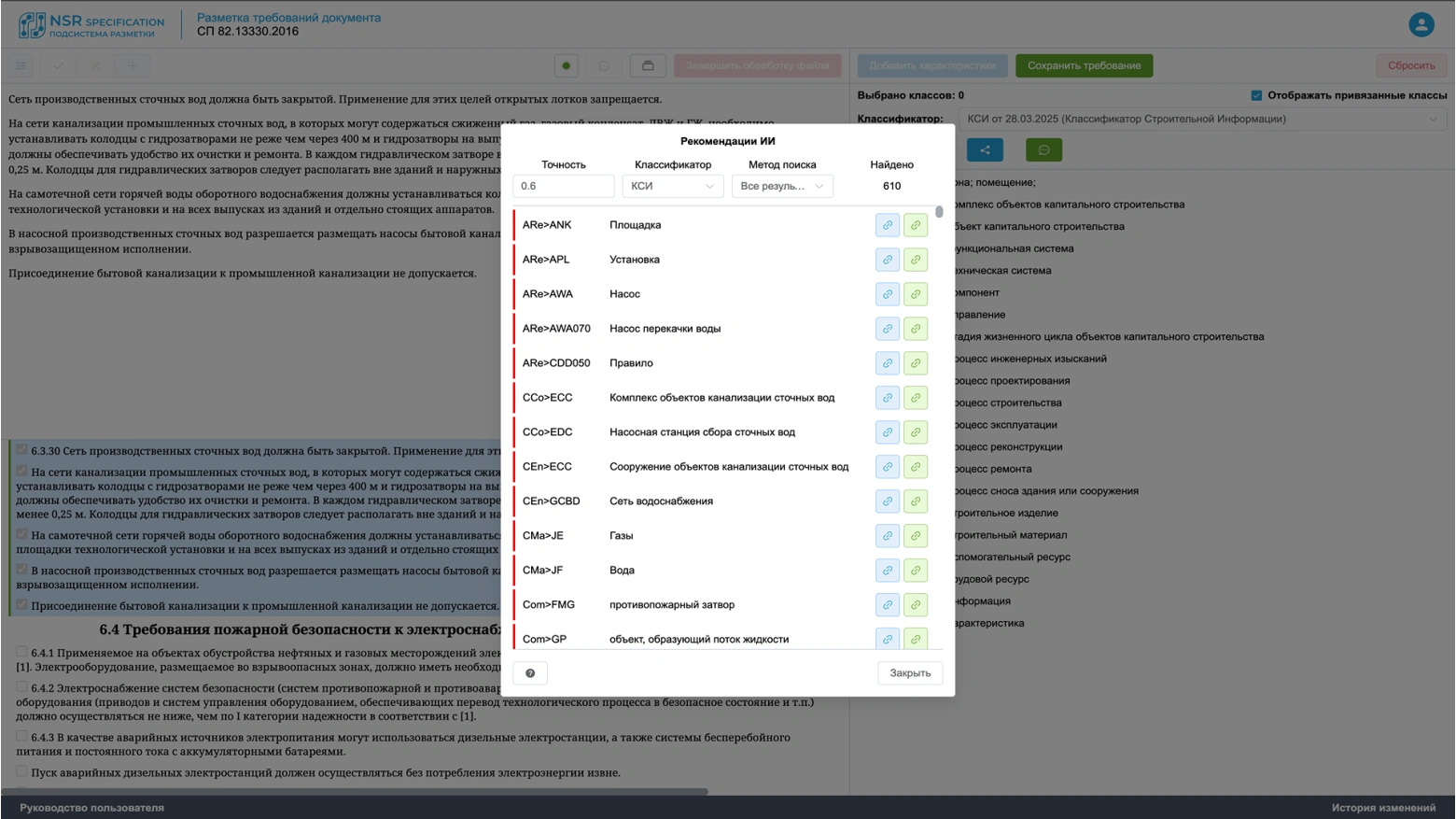 Организован импорт размеченных данных в Модуль требований NSR Specification, где пользователям предоставляется удобный доступ для подбора требований
