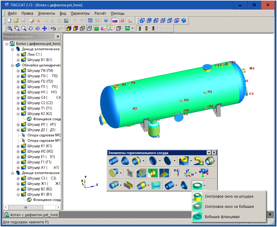 Программа ПАССАТ предназначена для расчета прочности и устойчивости сосудов, аппаратов и их элементов с целью оценки несущей способности в рабочих условиях, а также в условиях испытаний и монтажа.