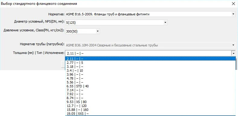 Задание элементов аппаратов (фланцы, прокладки, шпильки, крышки, днища, патрубки,…) из базы данных по ГОСТ, ОСТ, АТК, СТО
