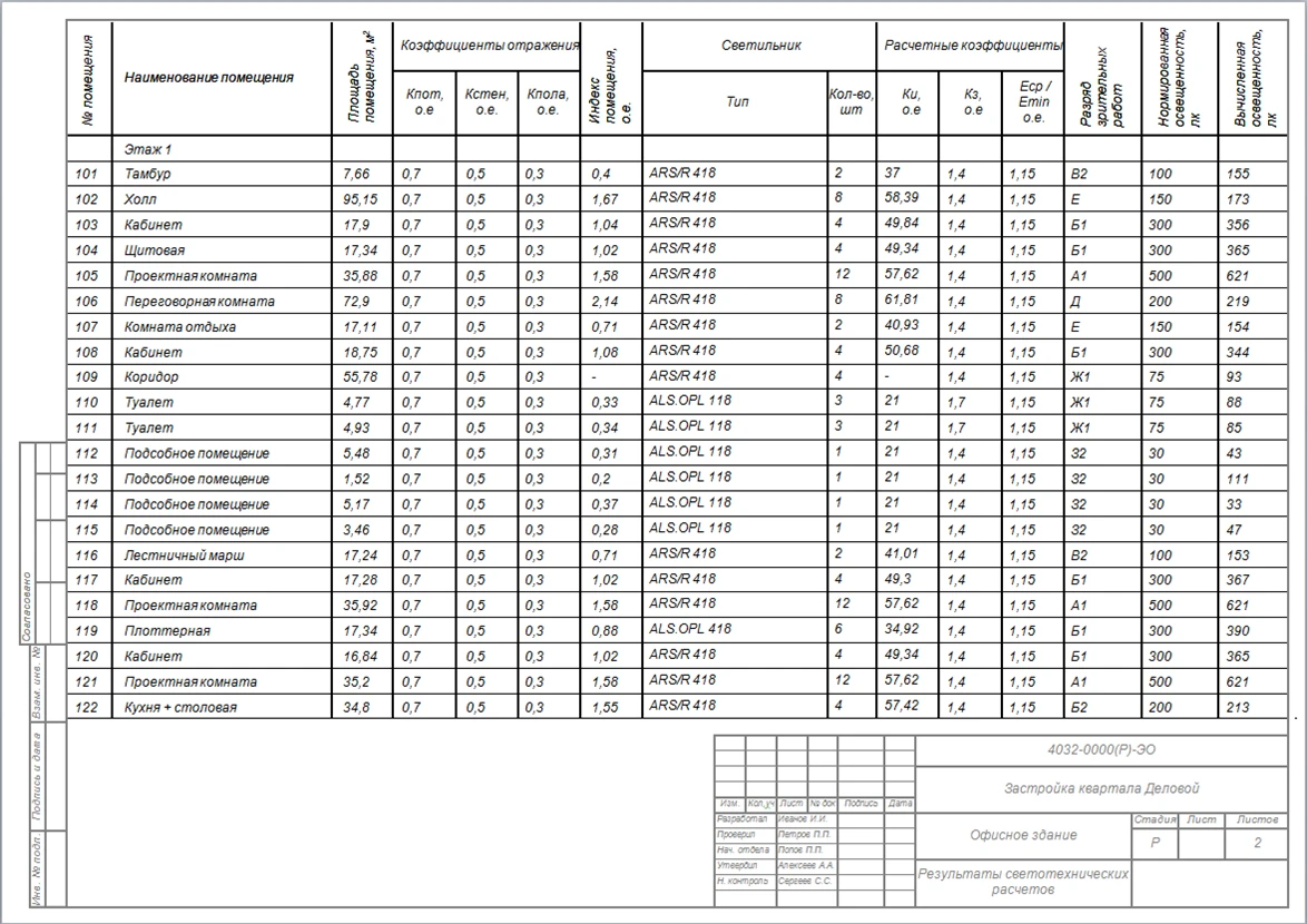 Светотехнические расчеты