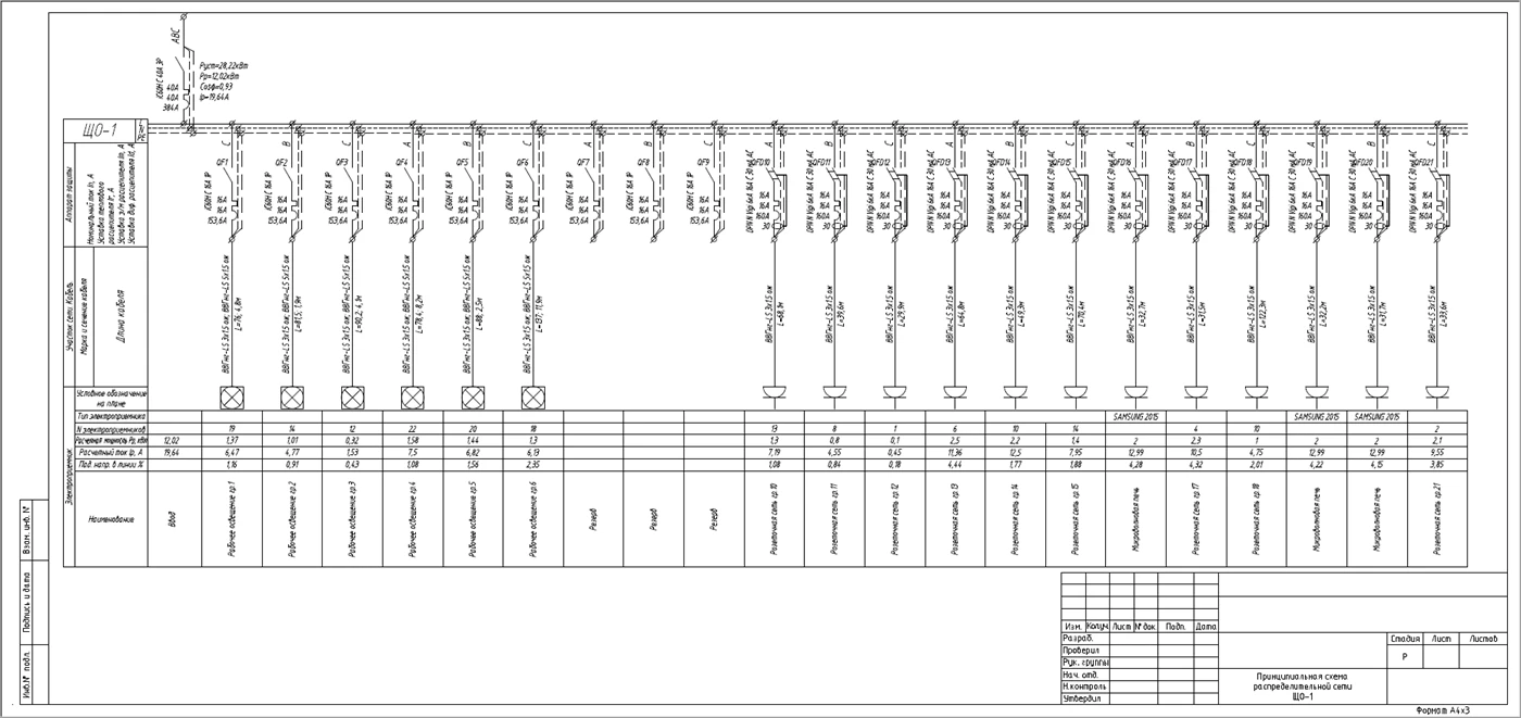 При подключении нескольких электроприемников шлейфом или от одного шкафа управления в однолинейную схему выводится информация по всем линиям