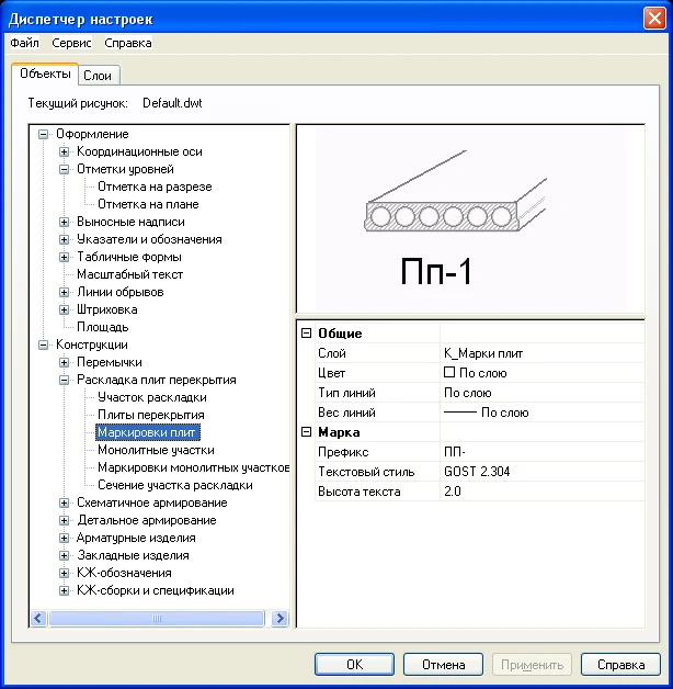 Диспетчер настроек параметров объектов