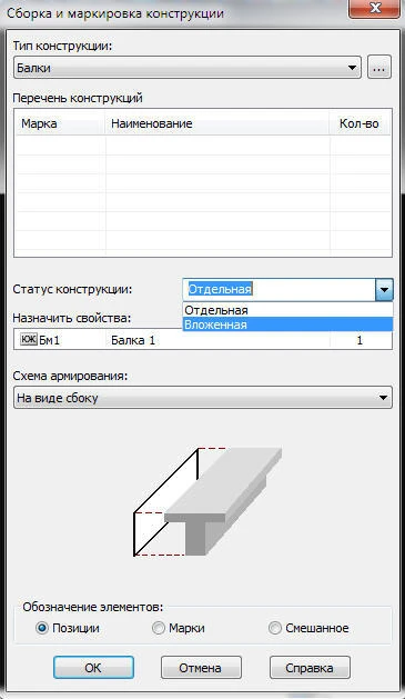 - Реализована возможность включать в состав железобетонных конструкций элементы металлопроката, которые попадают в соответствующий раздел спецификации на конструкцию;