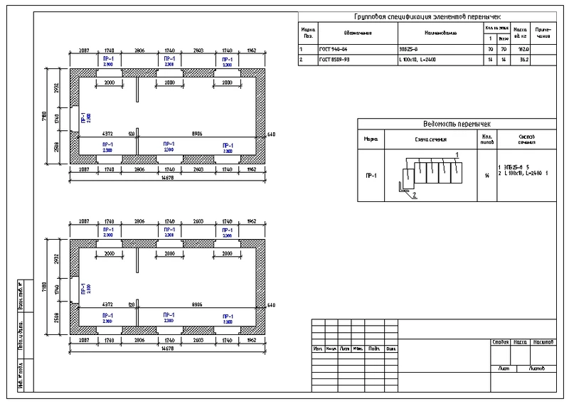 Составные перемычки над проемами