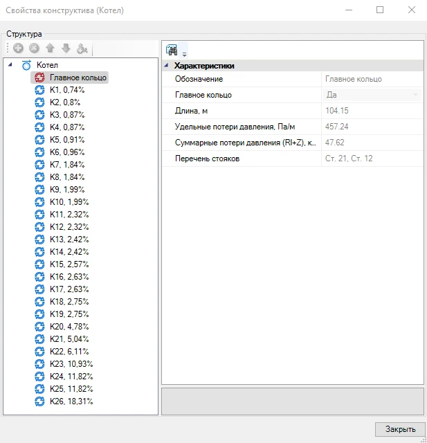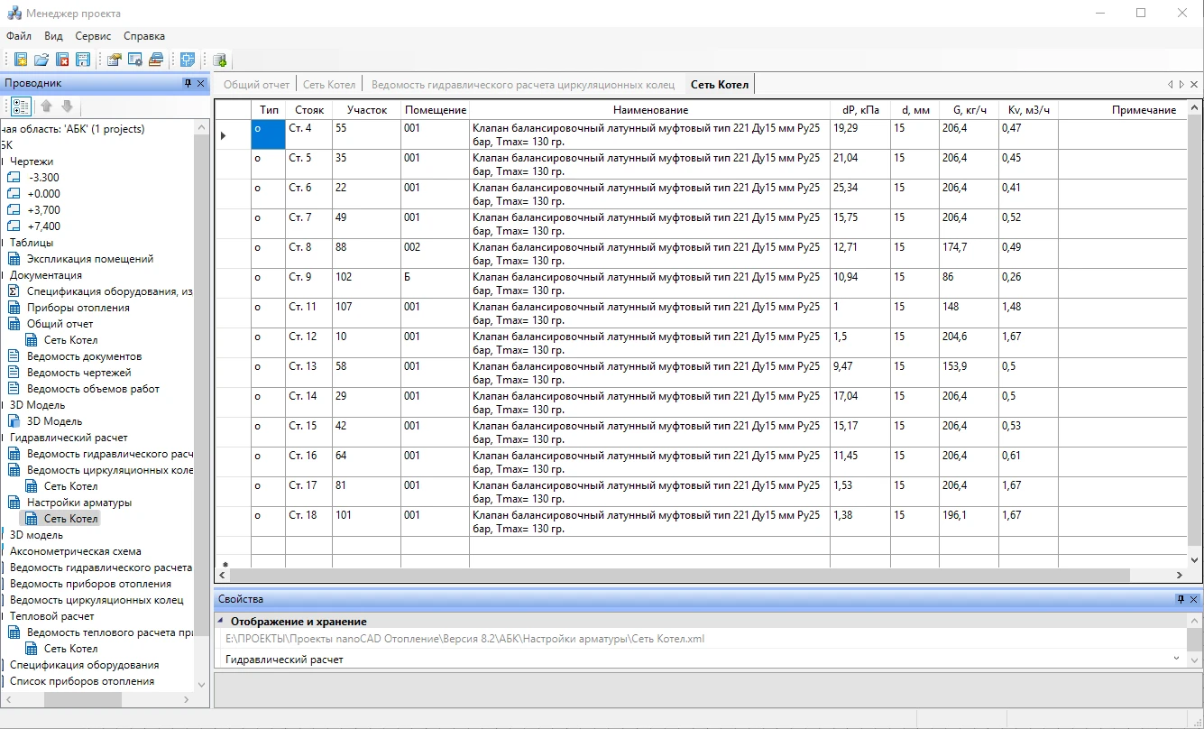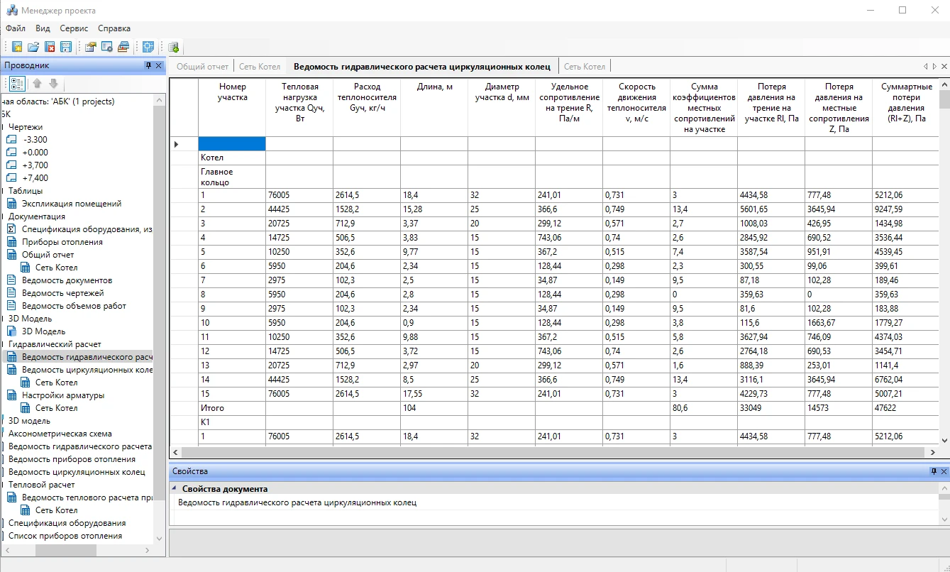 Ведомость циркуляционных колец, ведомость гидравлического расчета циркуляционных колец и настройки арматуры