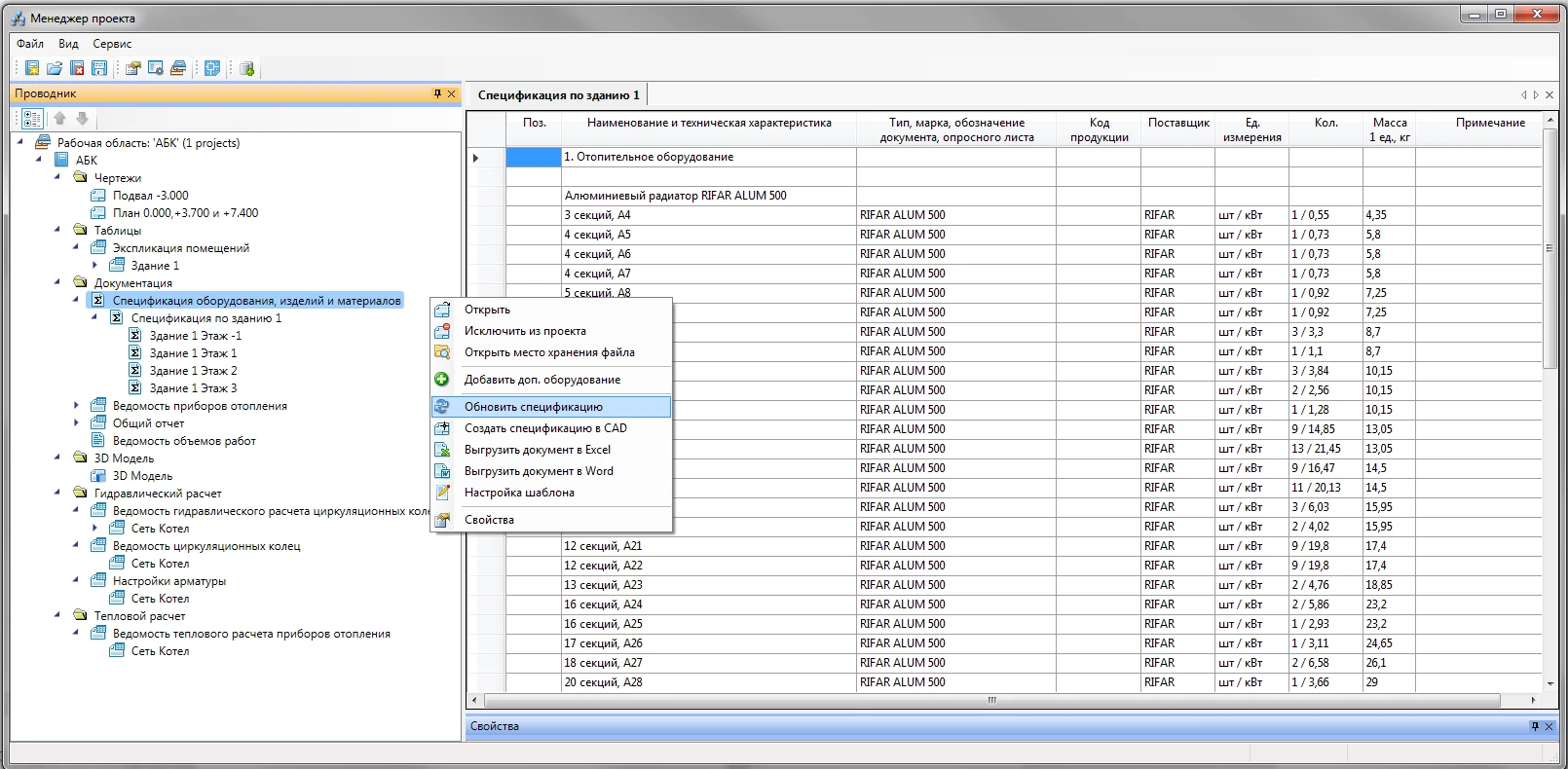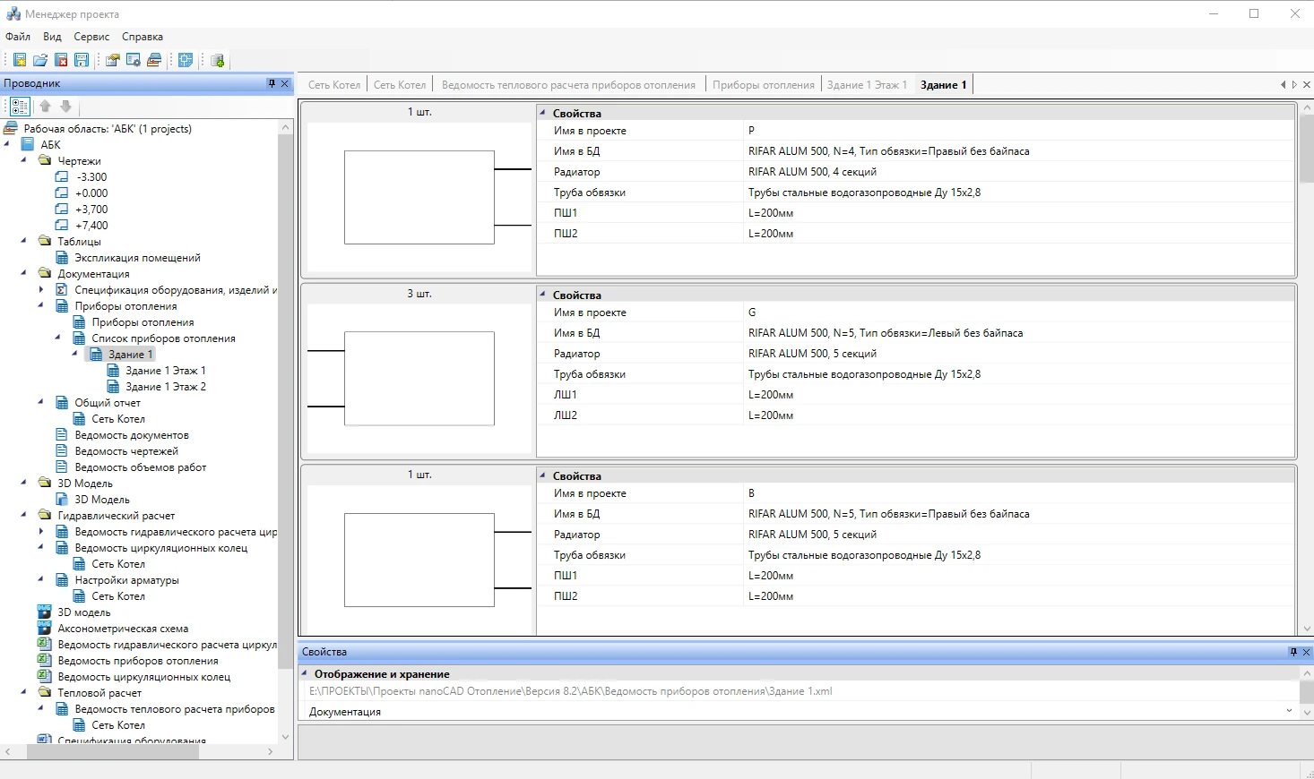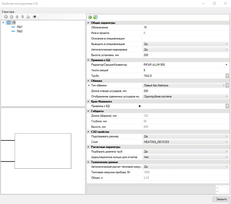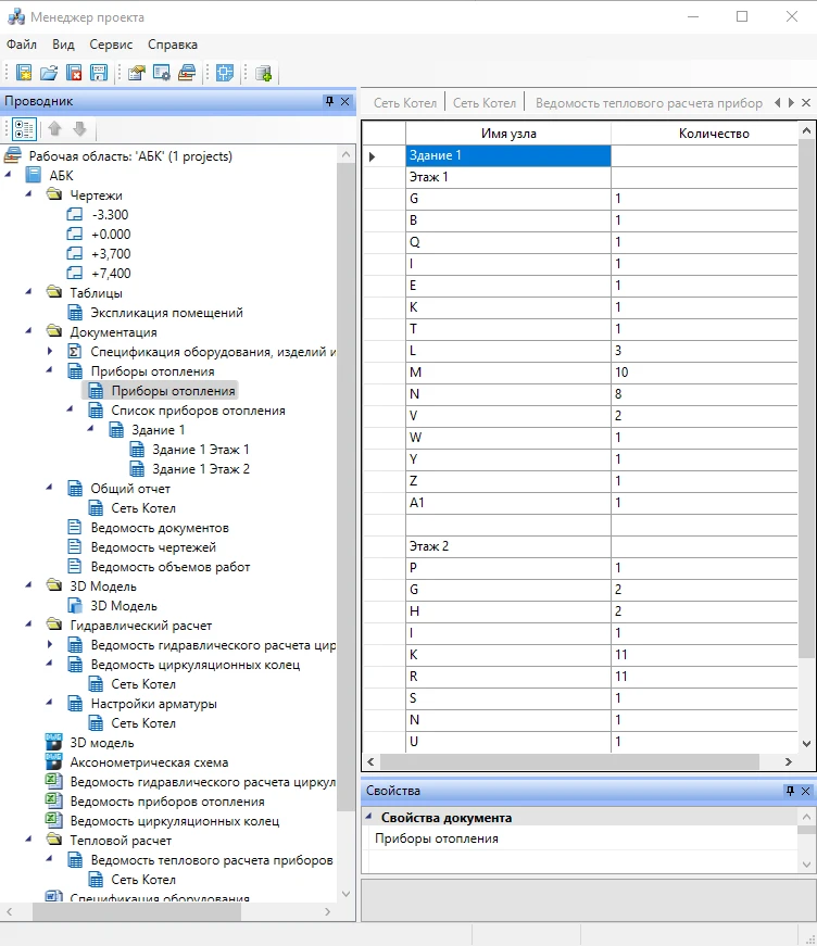 Интеллектуальные объекты Project Studio CS Отопление