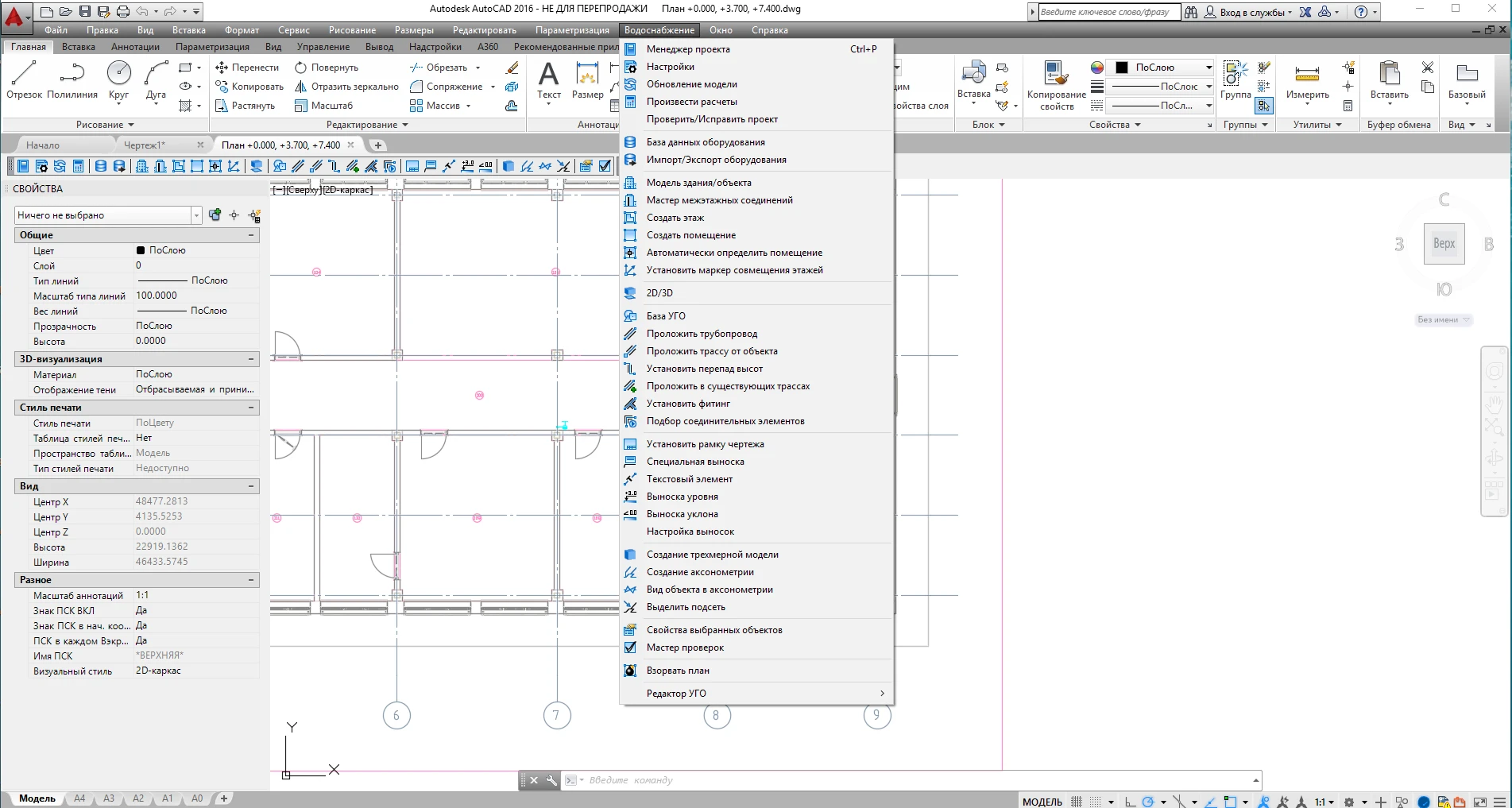 Гидравлический расчет. Формирование трехмерной твердотельной модели систем водоснабжения и канализации