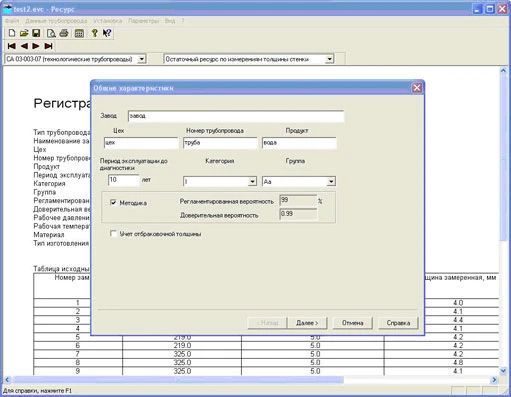 - Реализован расчет остаточного ресурса для технологических трубопроводов в соответствии со стандартом ассоциации «Ростехэкспертиза» СА 03-003-07 вместо РТМ 38.001-94;
